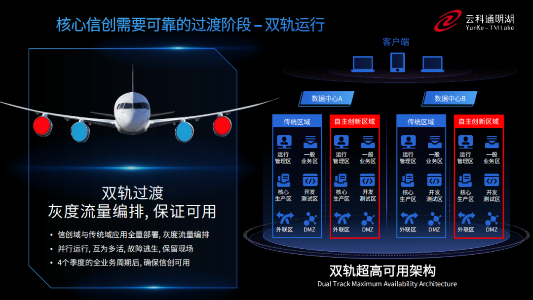 为实现双轨超高可用架构信创区和非信创区的跨域协同,实现信创区域和非信创区域的平滑过渡,太阳成集团tyc539官网通过五大引擎实现多层次的应用可持续性。